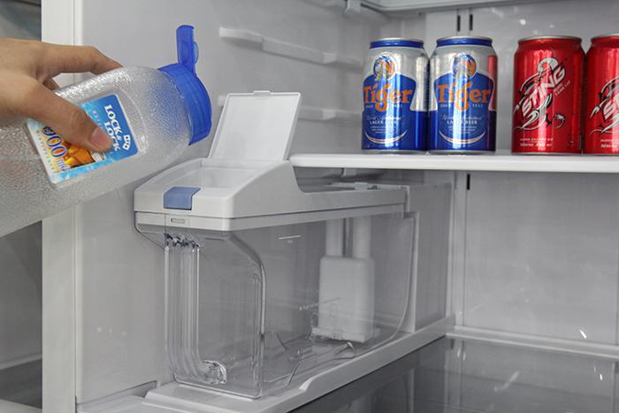 Bước 1: Cho nước vào hộp chứa bên trong ngăn mát tủ lạnh.