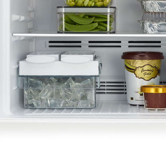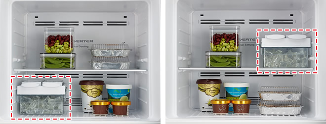 Bạn có thể dời khay đá cho thuận tiện và hiệu quả hơn trong việc sử dụng không gian lưu trữ.