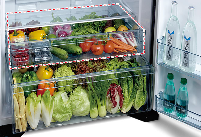 Khi chọn chế độ lưu trữ rau quả ở Ngăn Trữ Chuyển Đổi, bạn sẽ có hai ngăn rau quả với không gian lưu trữ tăng thêm đáng kể.